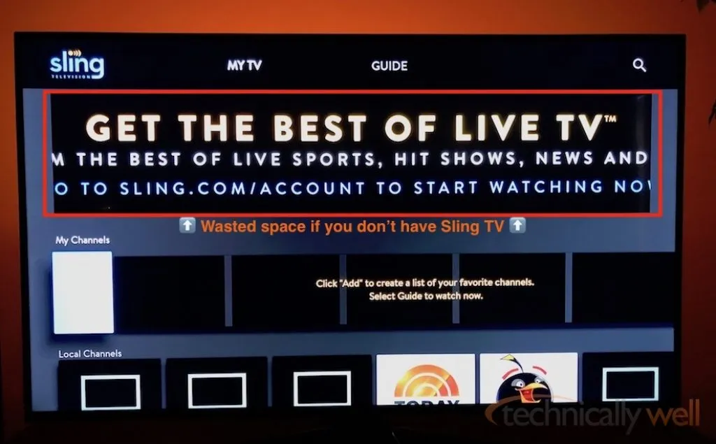 - Big ad if you don't subscribe to Sling TV