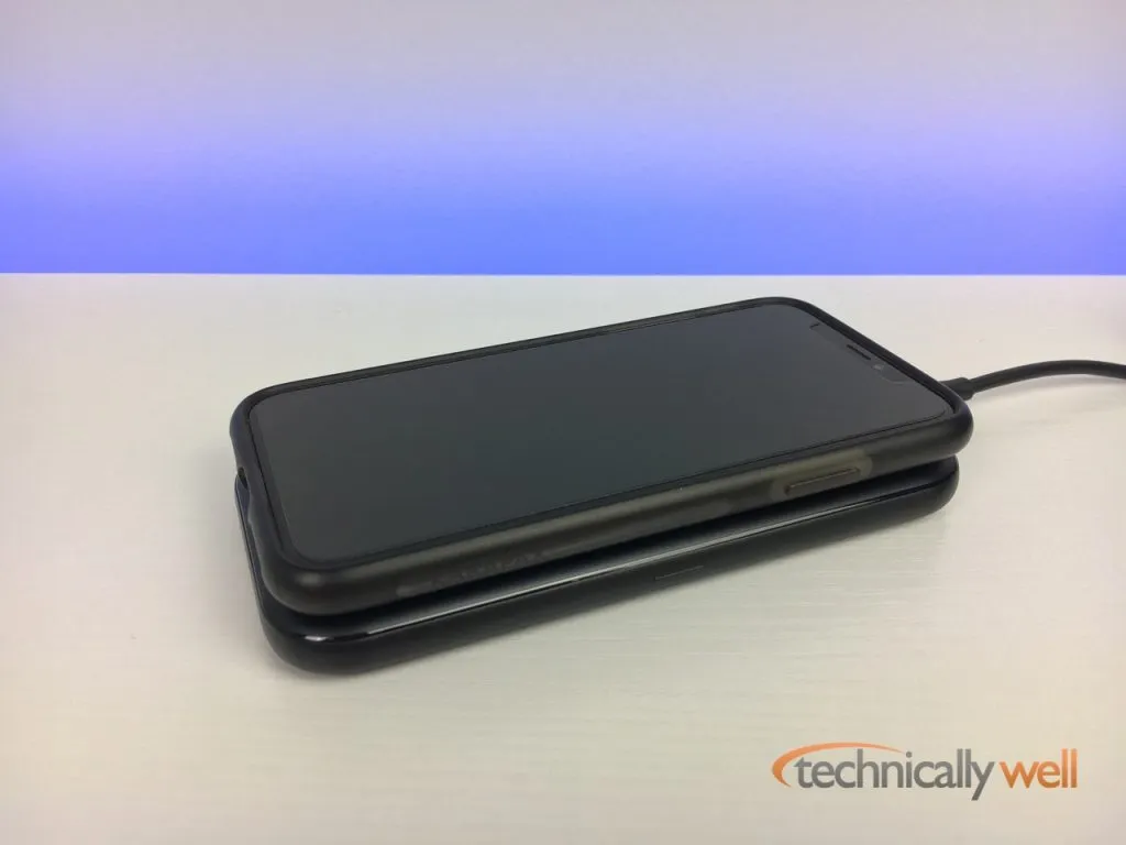 The PowerWave Base Pad is capable of higher speed wireless charging. If you want faster charging (up to 7.5W on iPhones and up to 10W on support Android phones), you’ll need to use a Quick Charge 3.0 charger. Unless you have a need for fast charging, I recommend using the regular, “slow” charging of a 5V 2A wall adapter as it will generate less heat and help with the longevity of your phone’s battery.