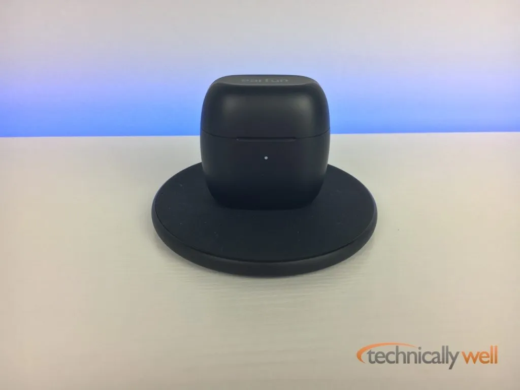 - Qi and USB-C recharging: The EarFun Air utilize a USB-C connector for recharging the case. The case also supports wireless Qi charging, which is a nice bonus!