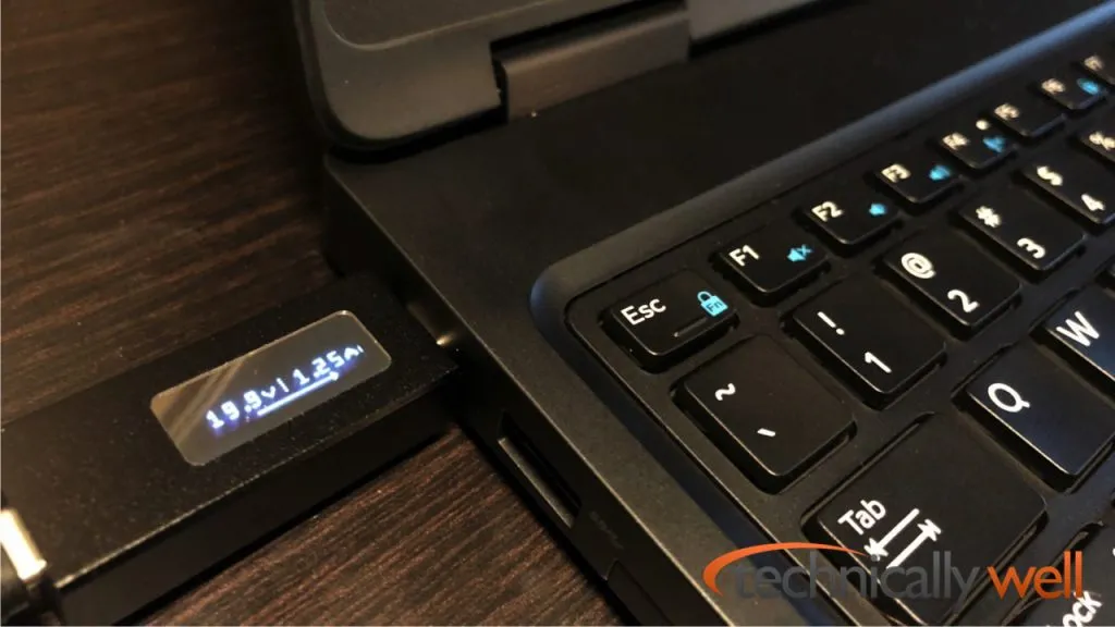 First up was a Dell 5580 laptop. Although the laptop complained that I’m “only” using a 60W charger and not the standard 65W charger, I still found that the laptop would charge it’s internal battery while in use and the Inateck USB-C charger was a fine replacement for the much larger charging brick that came with the laptop. Under heavy loads (launching multiple apps at the same time), I found the laptop was pulling 20V 2A or about 40W from the Inateck charger, so the laptop did not even use the charger to its full capability.