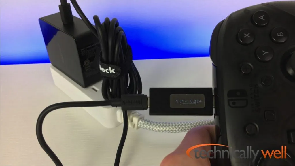 I’ve never seen the Pro Controller charge with more than 5V 0.5A with other chargers, and the Inateck charger was able to adapt and supply that (measly) power output.
