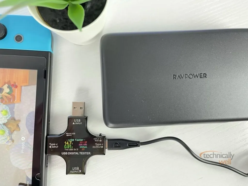 The RAVPower PD power bank supports the Nintendo Switch’s 15V profile, allowing you to play in handheld mode and charge at the same time.