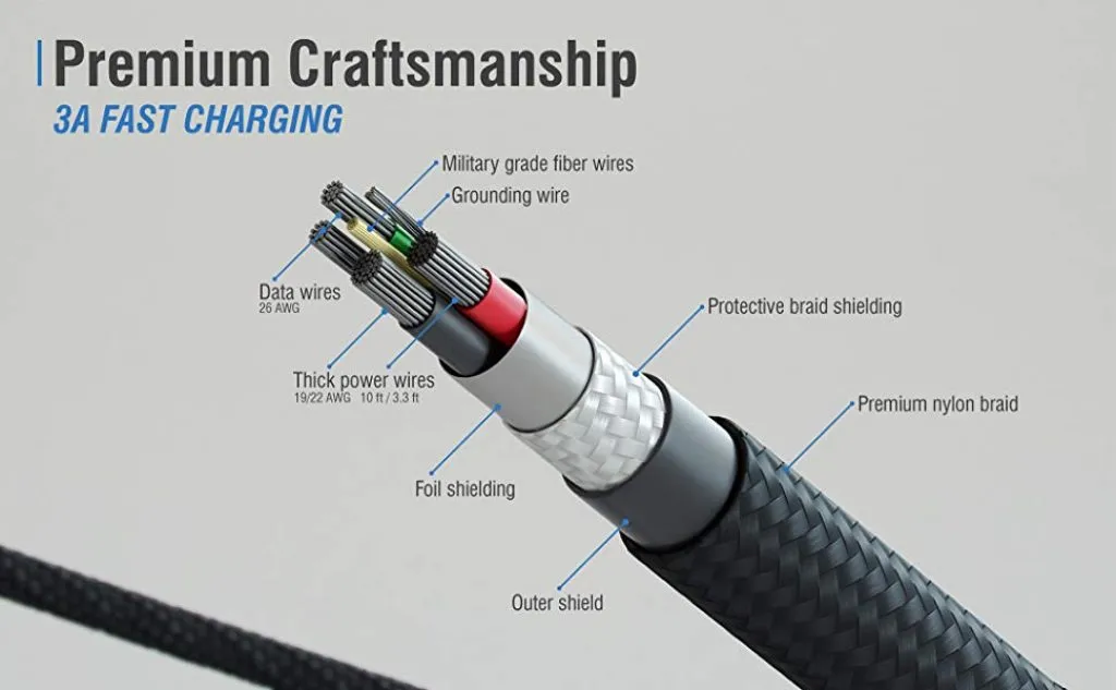 This cable features a nylon covering and special housing (they call it “DualHousing”) at the connector to help protect against damage caused by bending. Thanks to this, the cables are able to withstand over 50,000 bends!